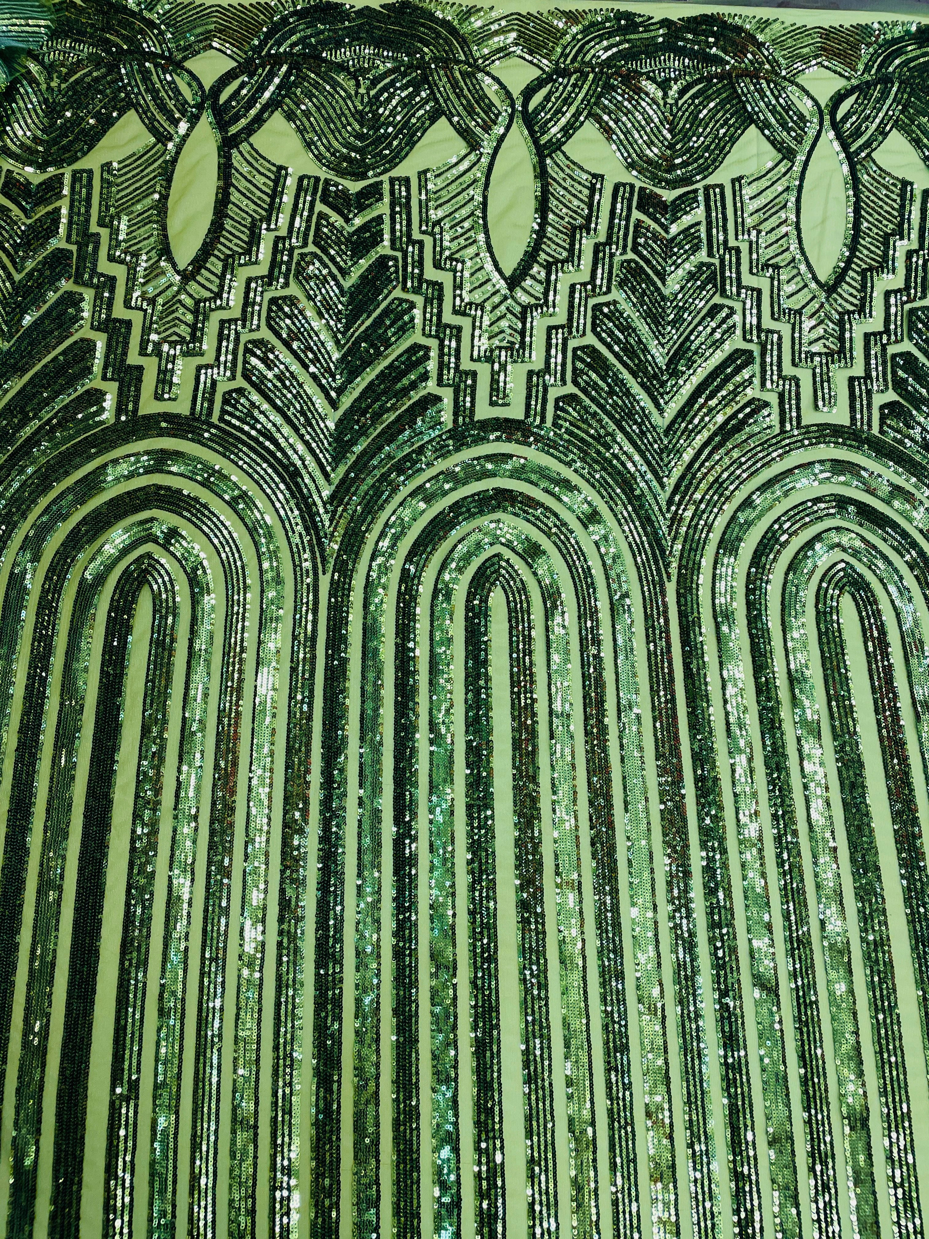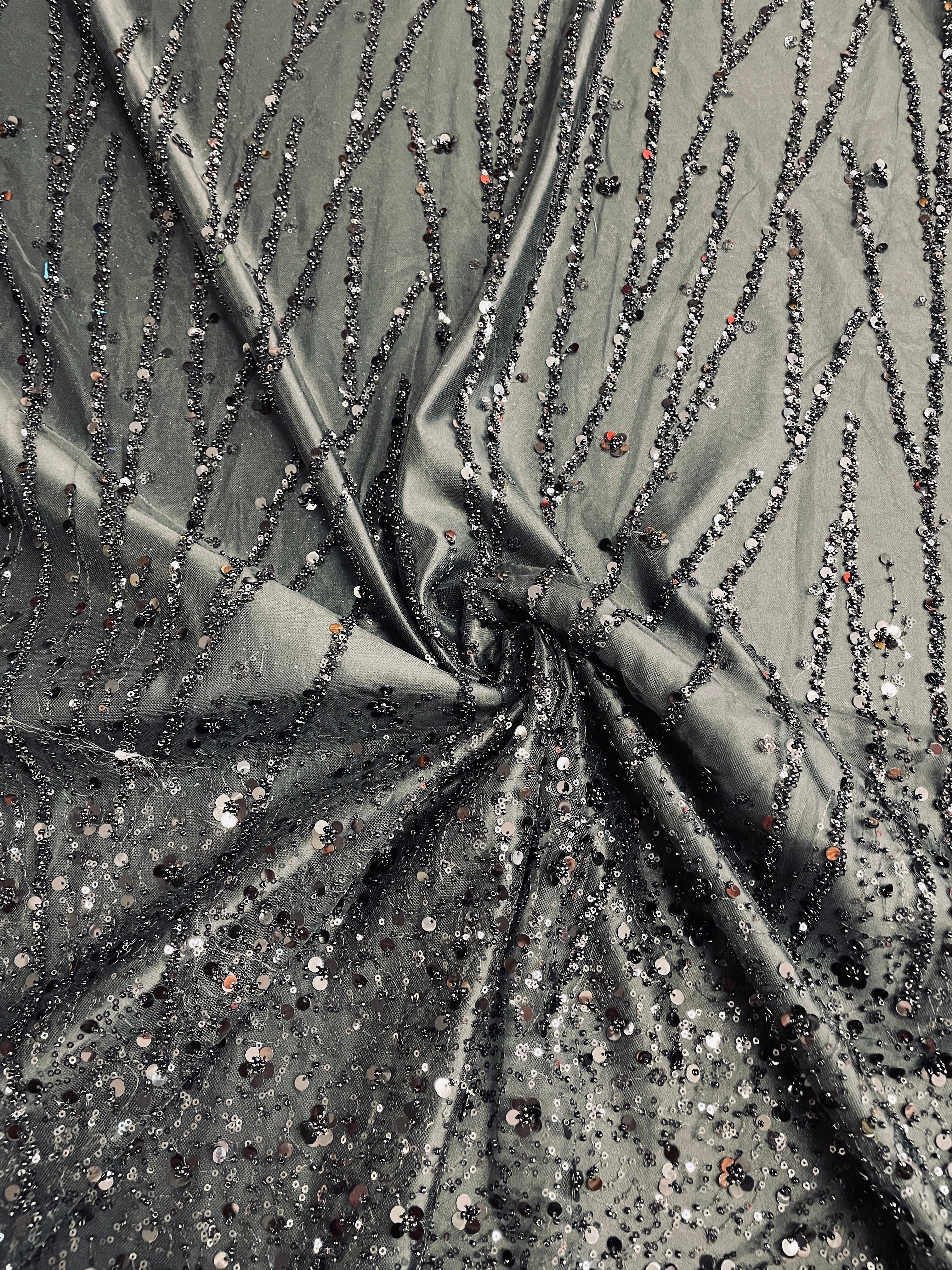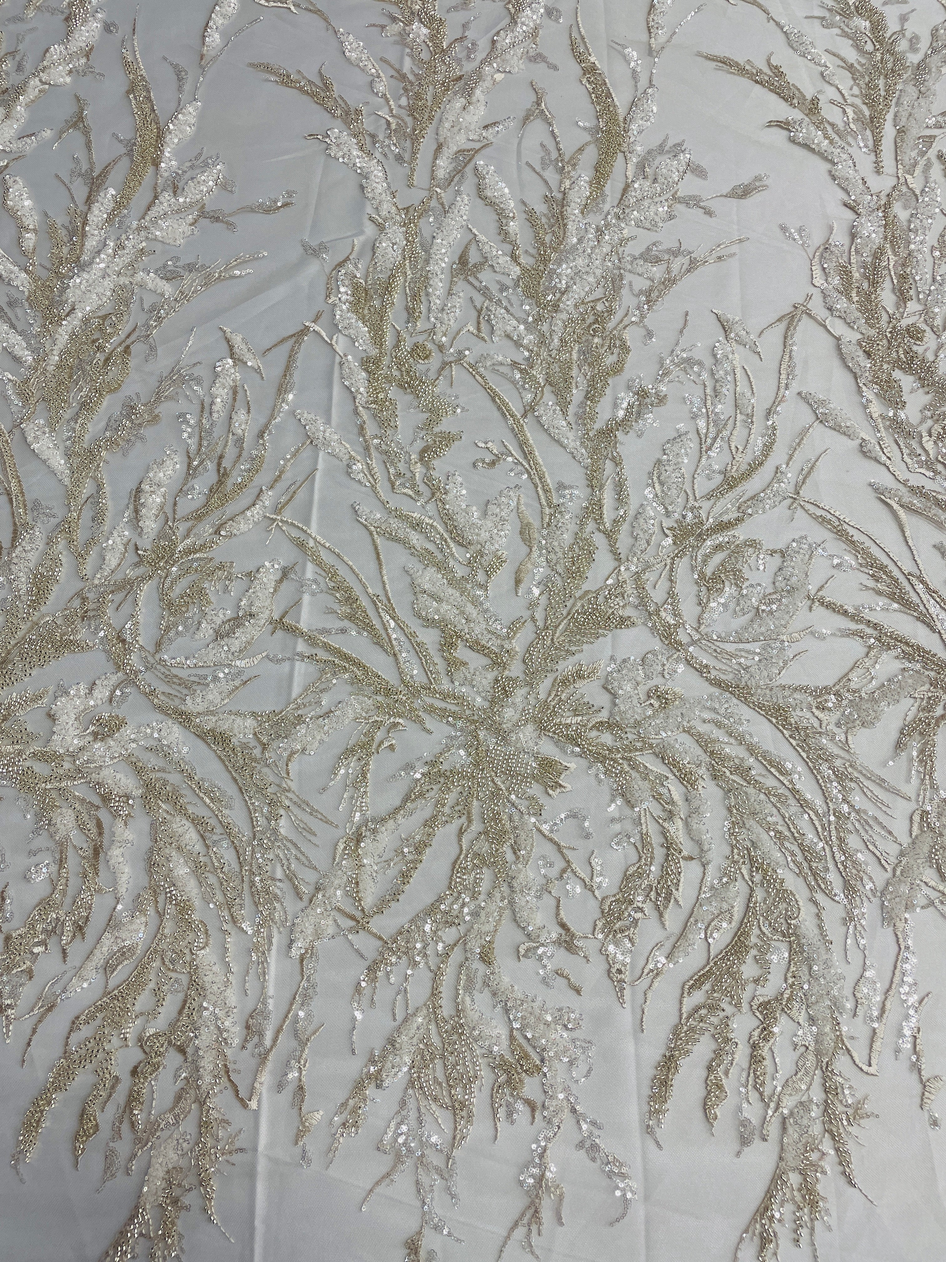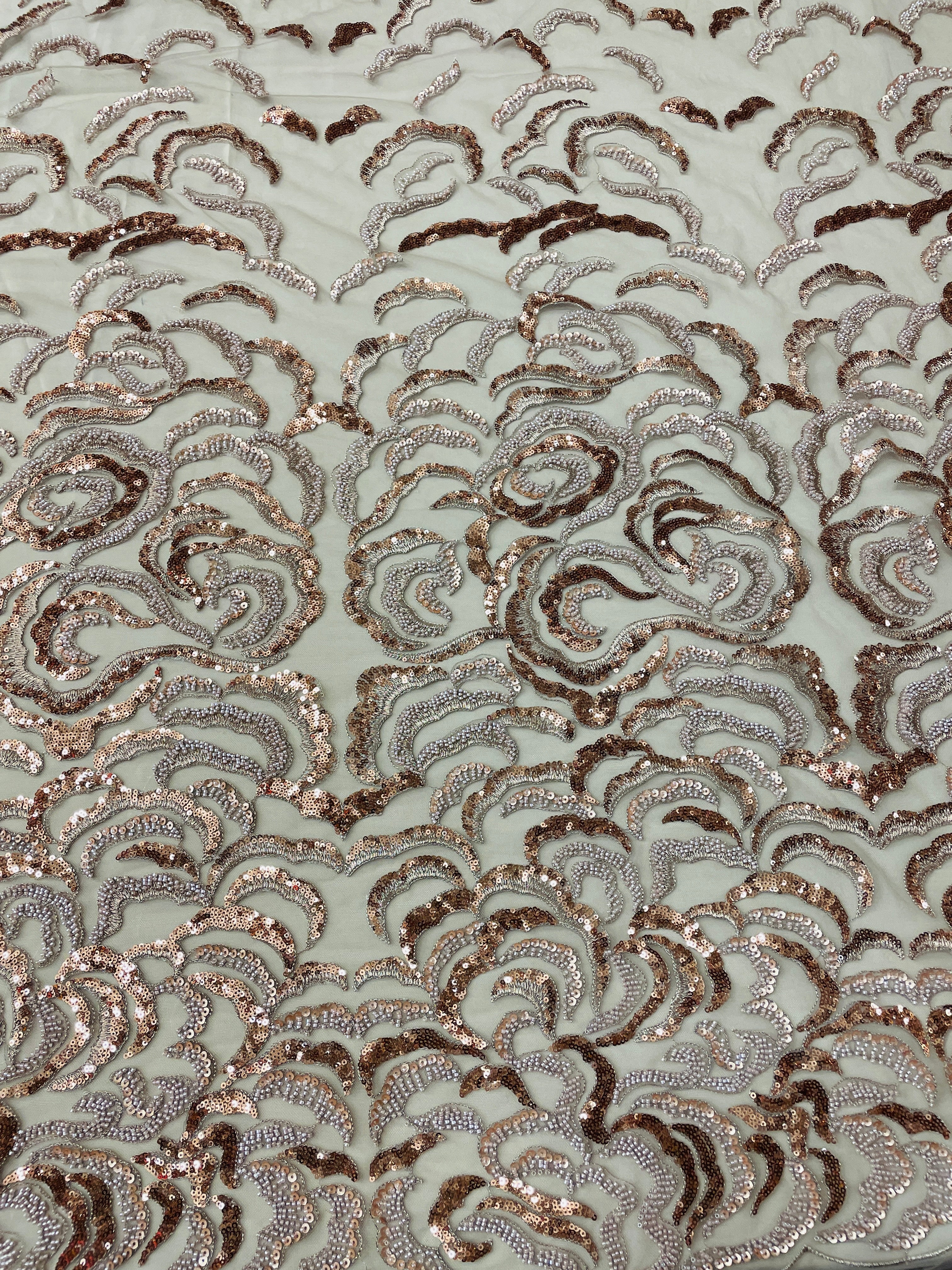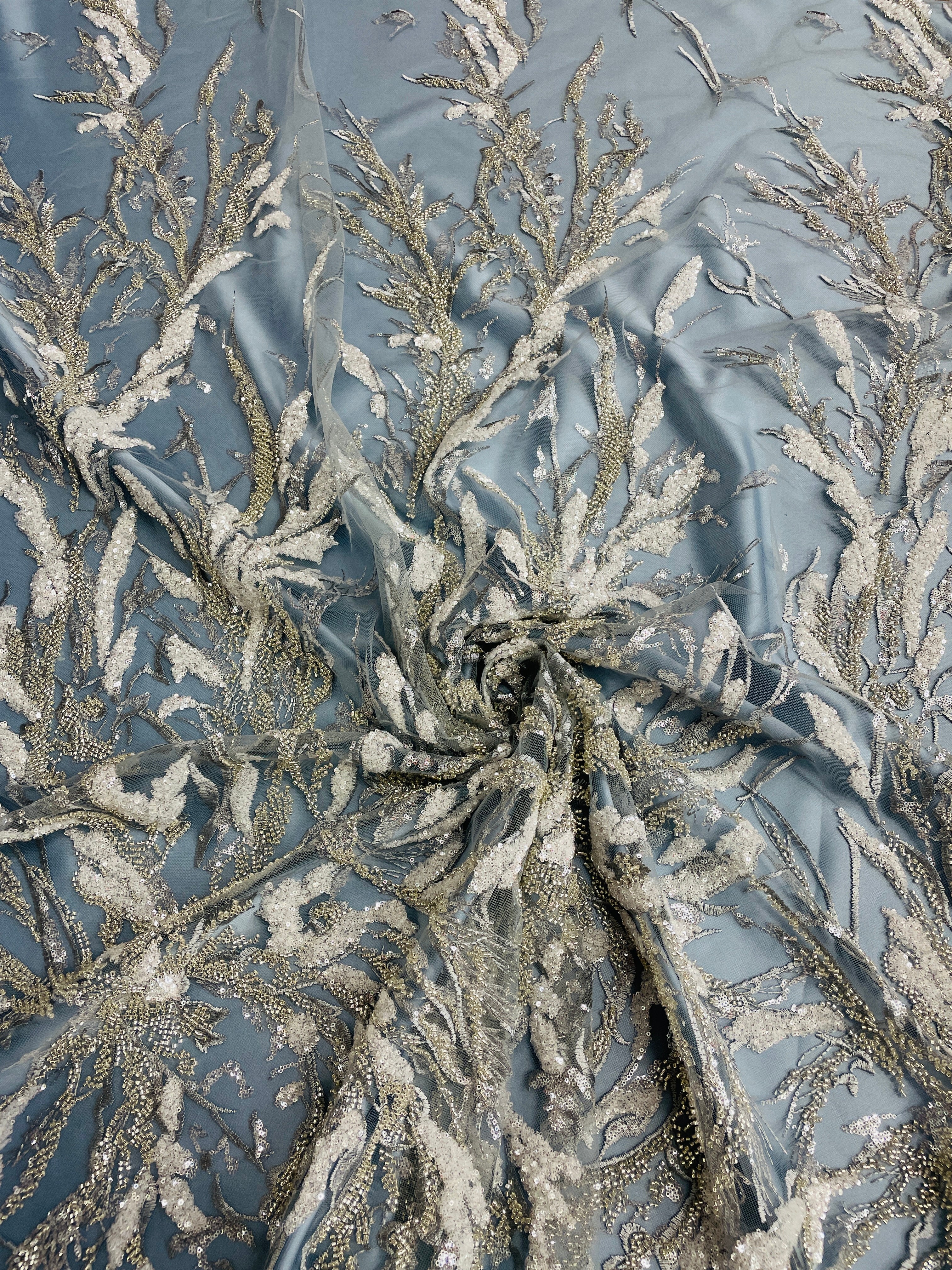 Firecracker Holographic Sequin Appliques on Nude Illusion mesh- 2 way stretch and 60" wide