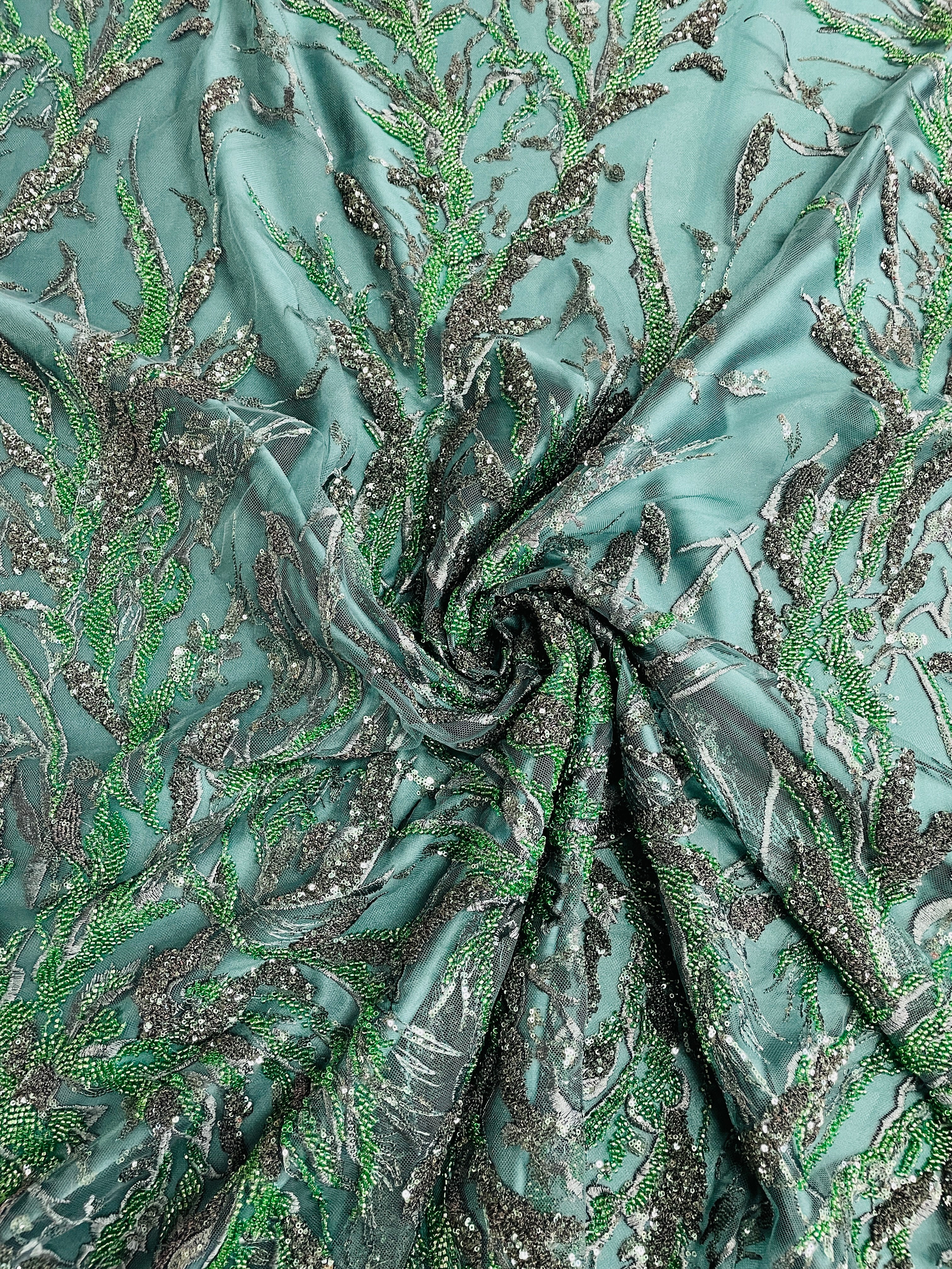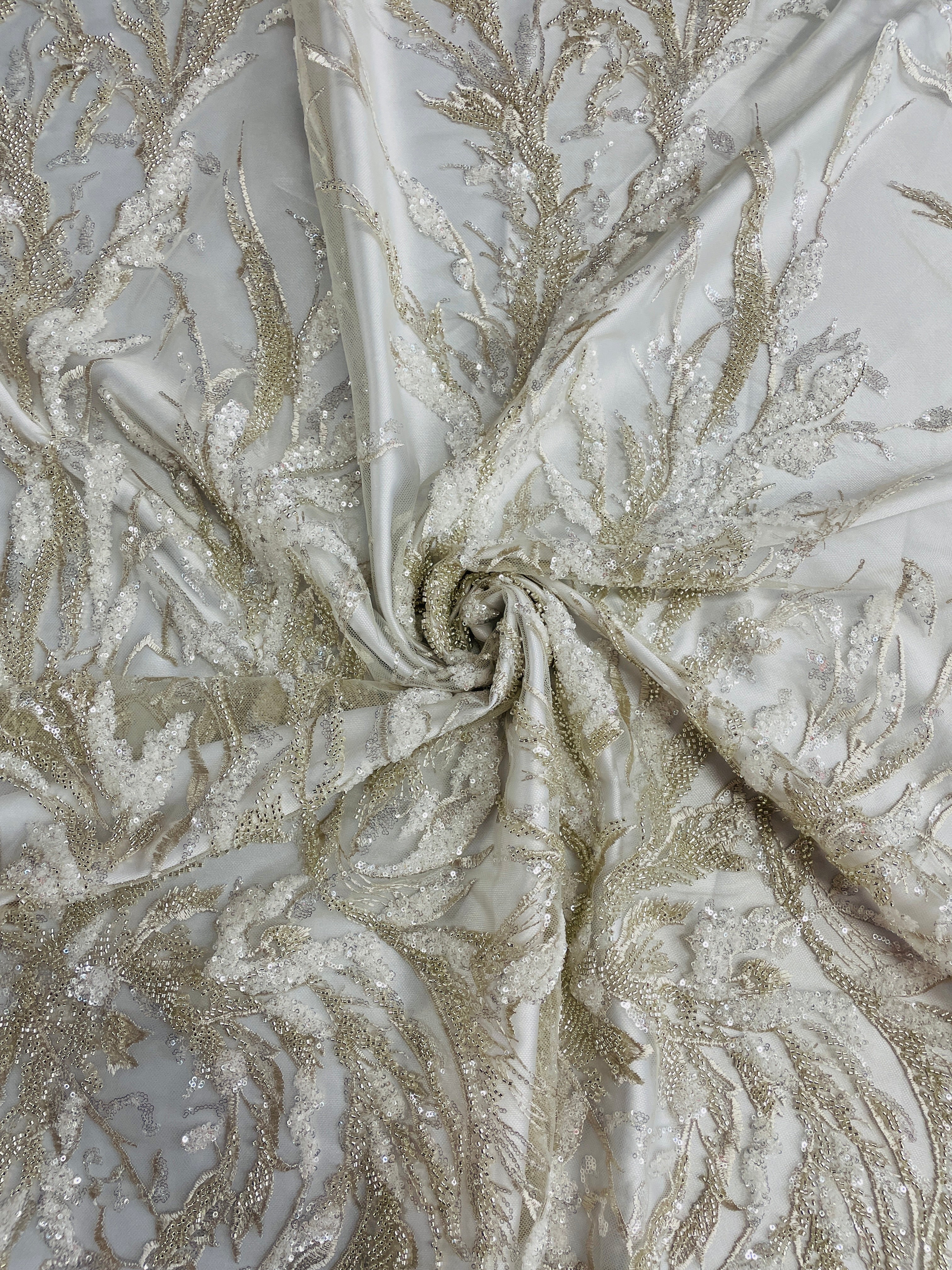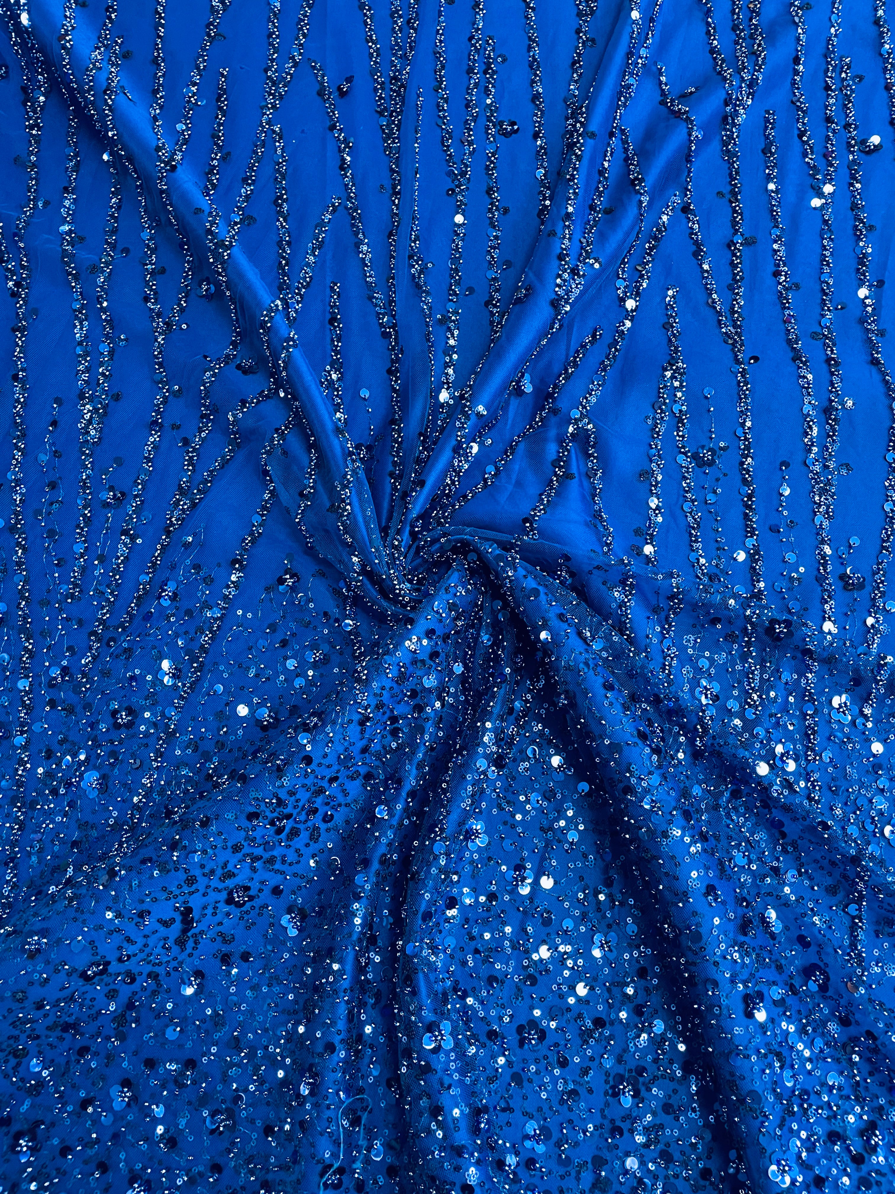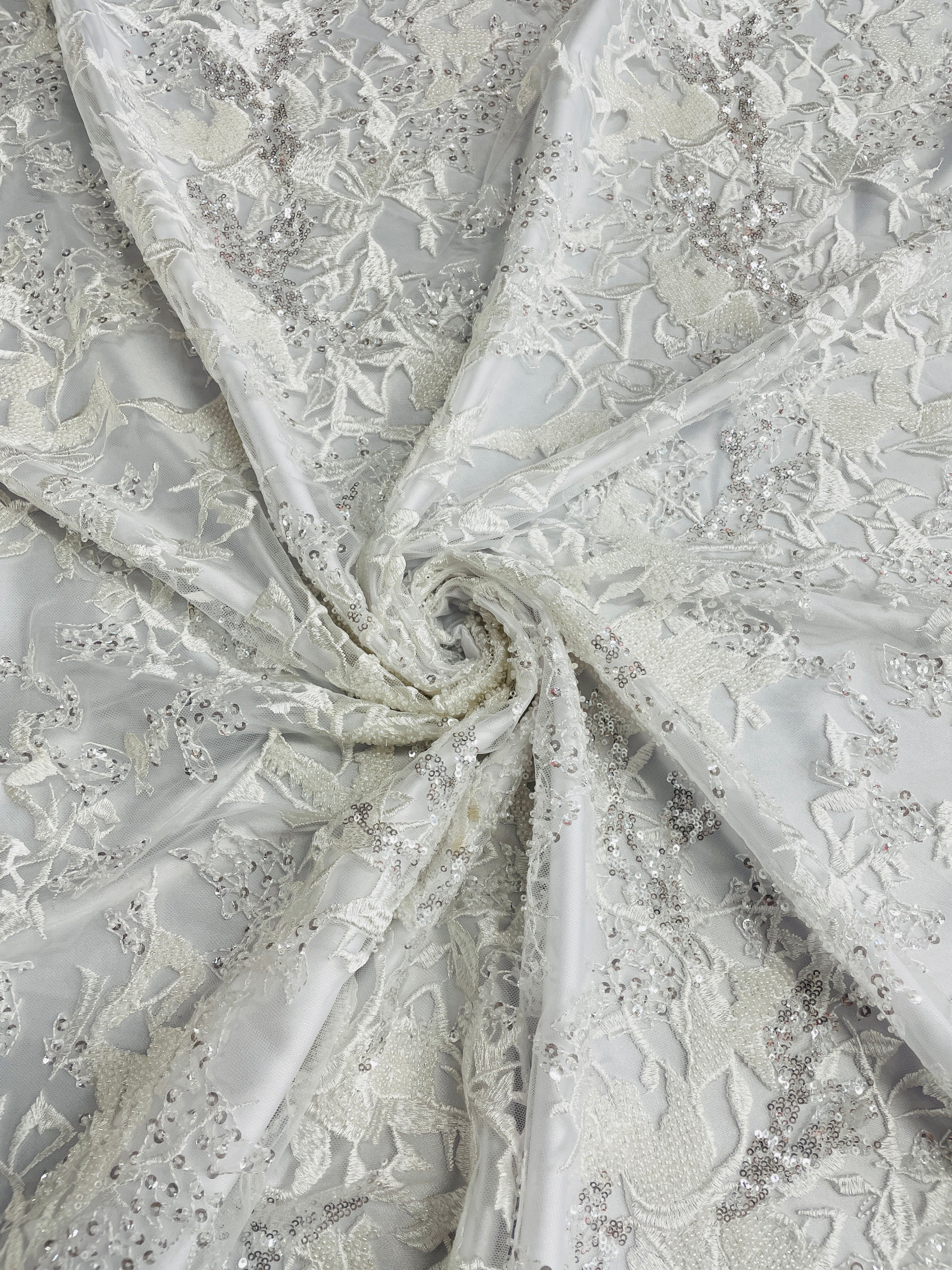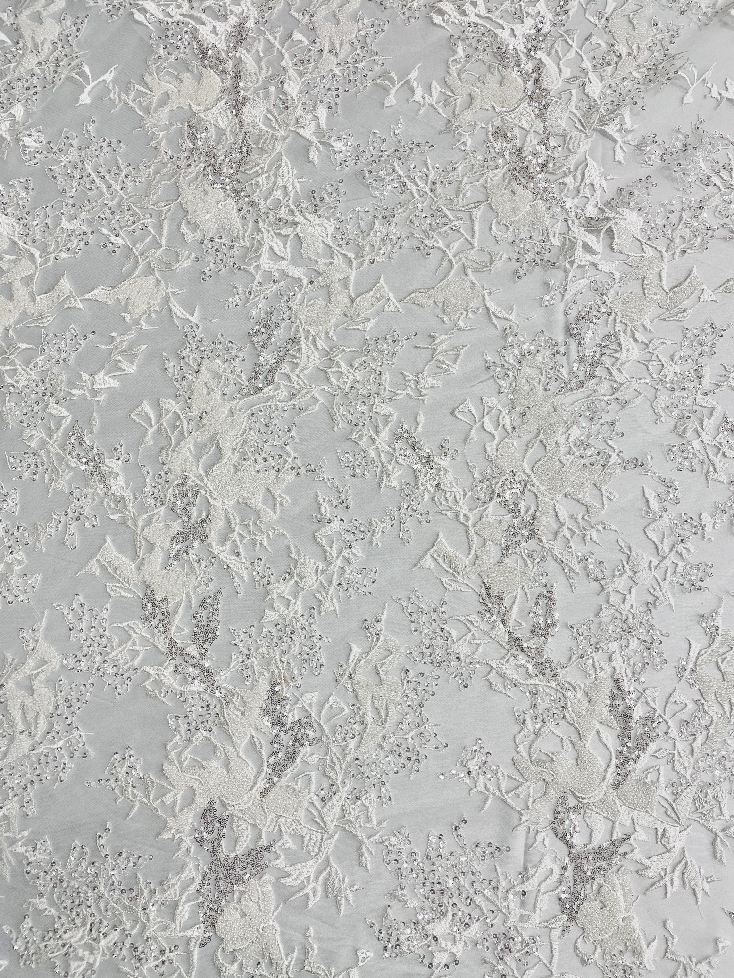 Firecracker Holographic Sequin Appliques on Nude Illusion mesh- 2 way stretch and 60" wide