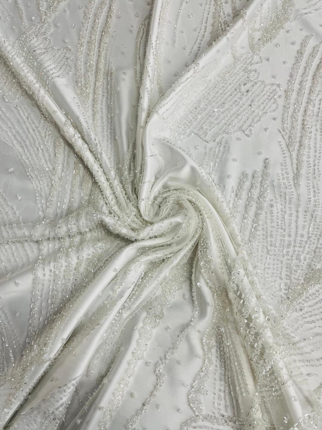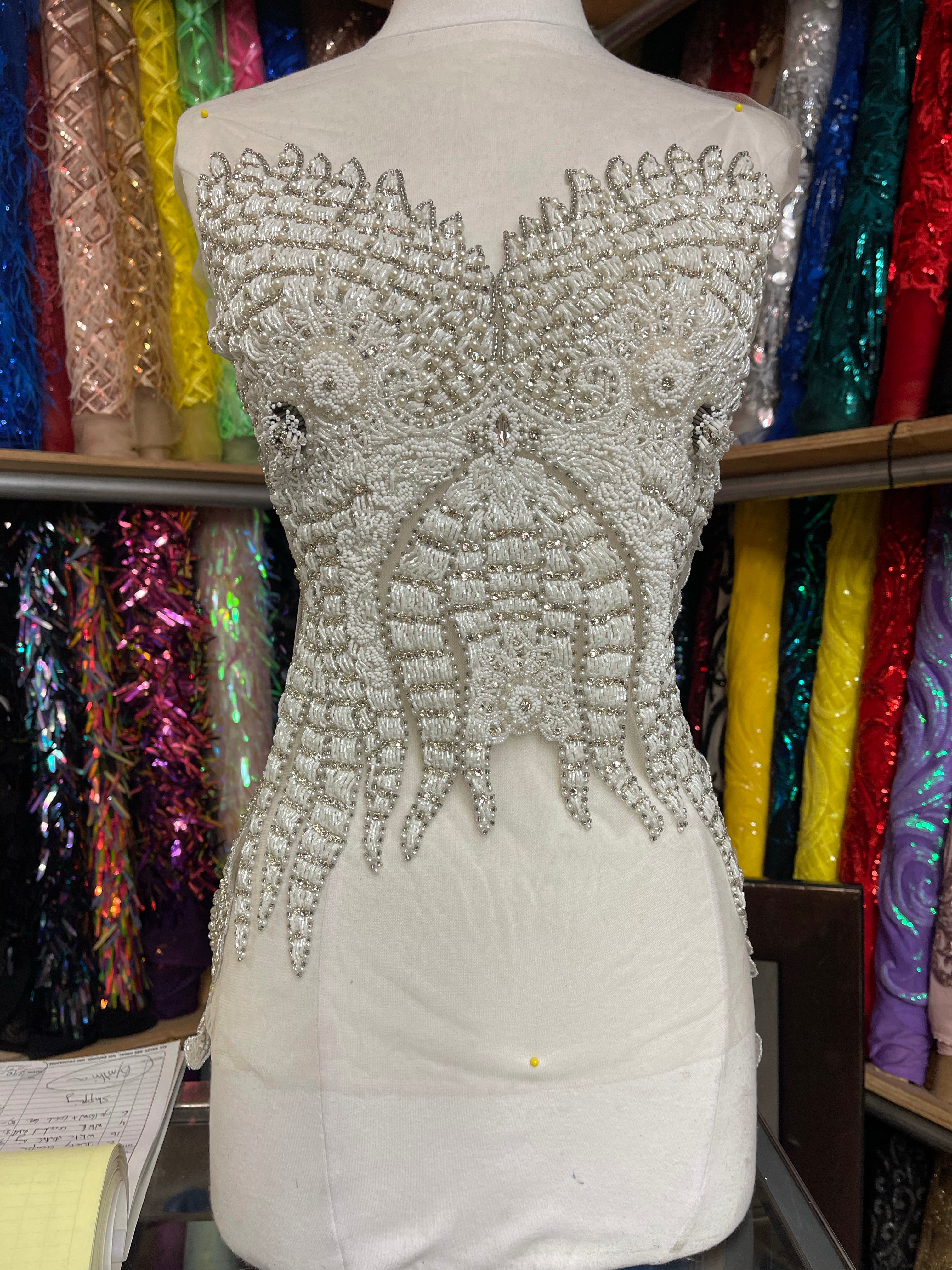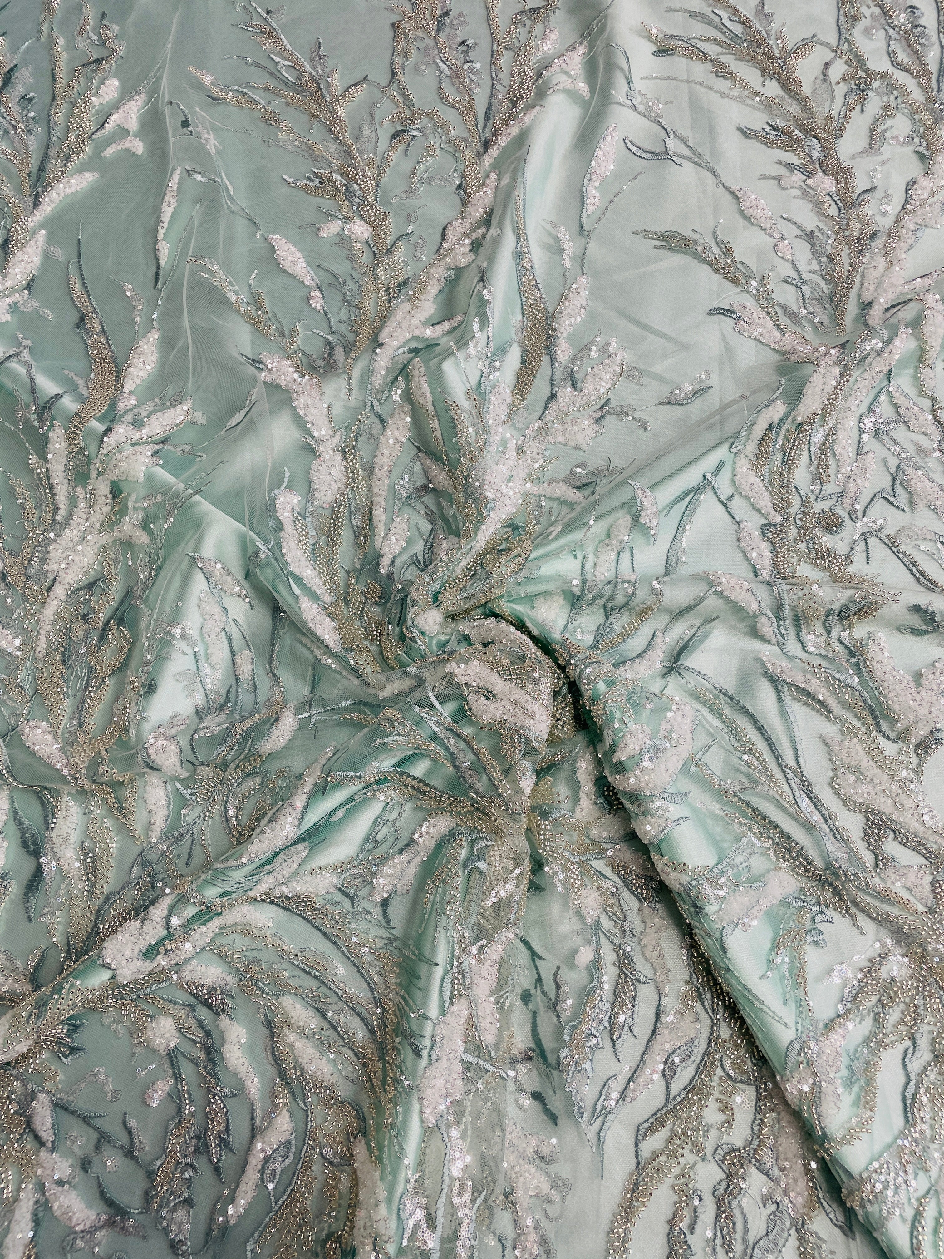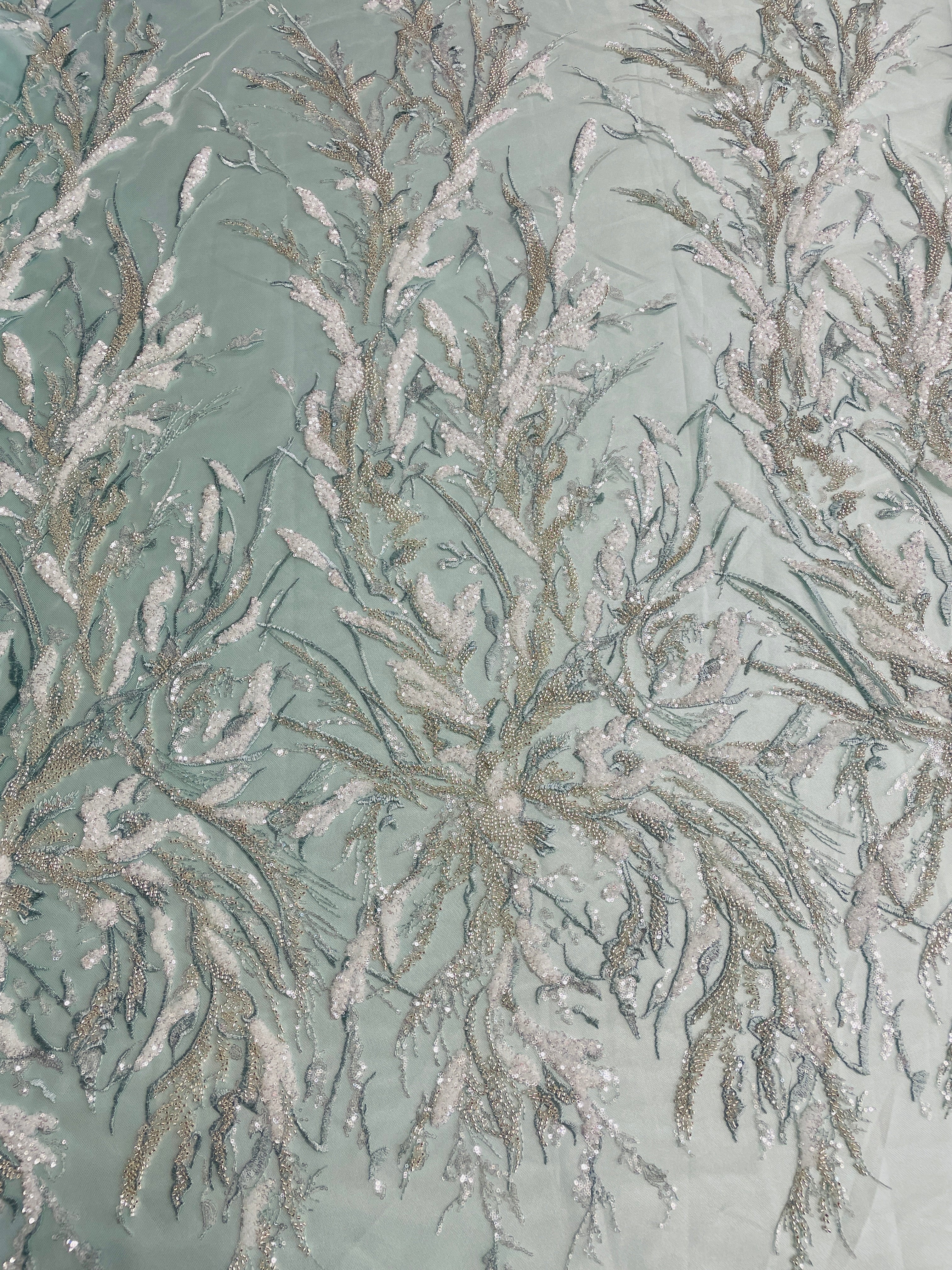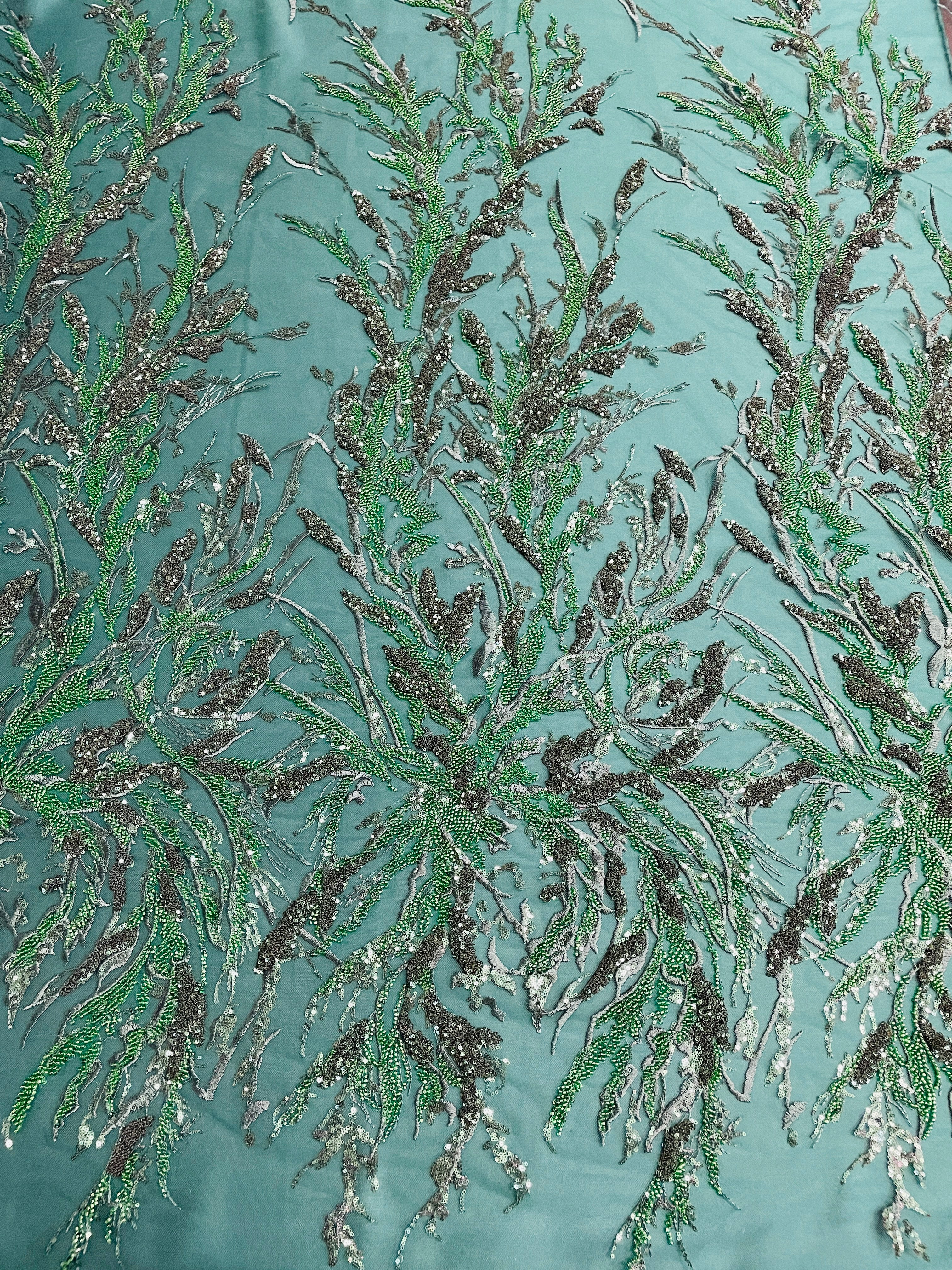 Firecracker Holographic Sequin Appliques on Nude Illusion mesh- 2 way stretch and 60" wide