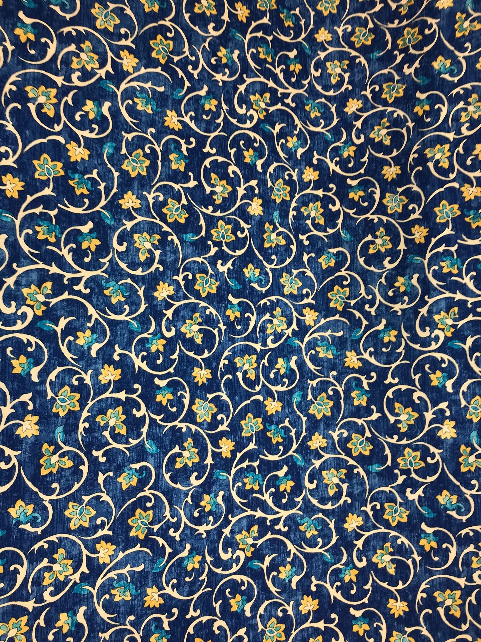 Yellow Tulips on Indigo Silky Mikado Print