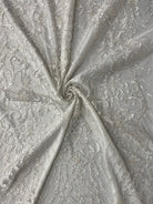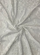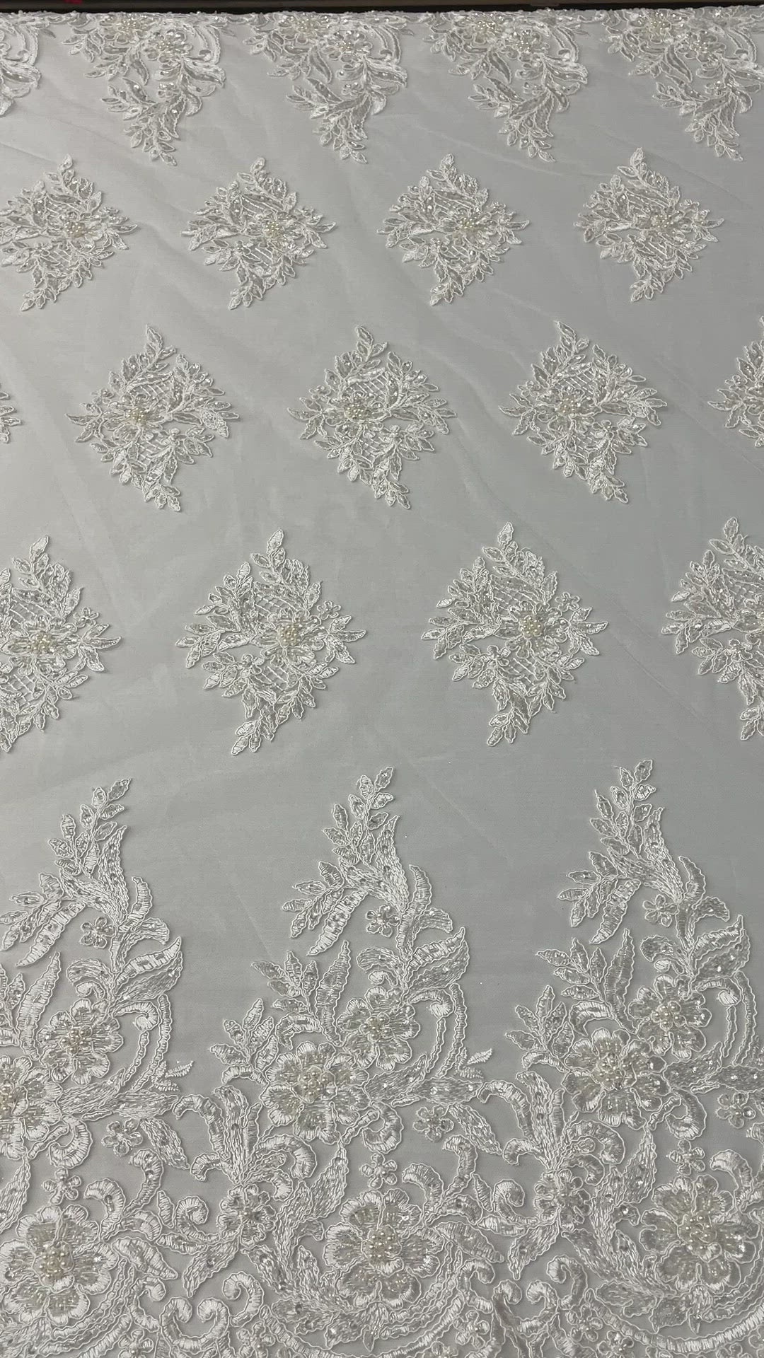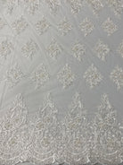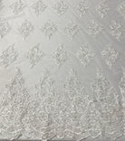 Beaded and embroidered gradient design with symmetrical edge trim on two way stretch mesh 50" wide