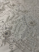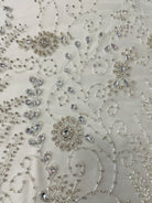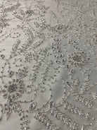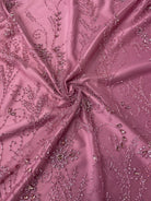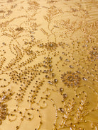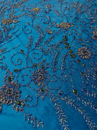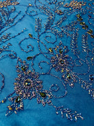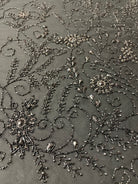 Beautiful hand beaded design 45" wide on two way stretch mesh