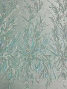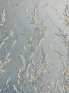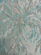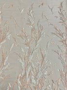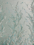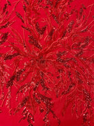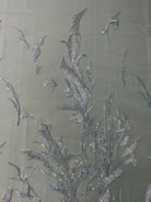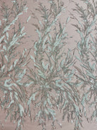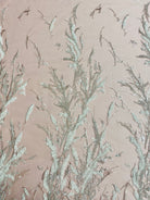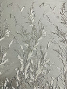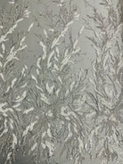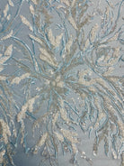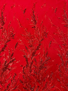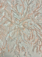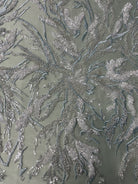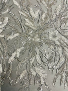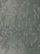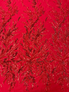 Hand beaded design 52" wide on 60" transparent mesh with a slight vertical two way stretch.