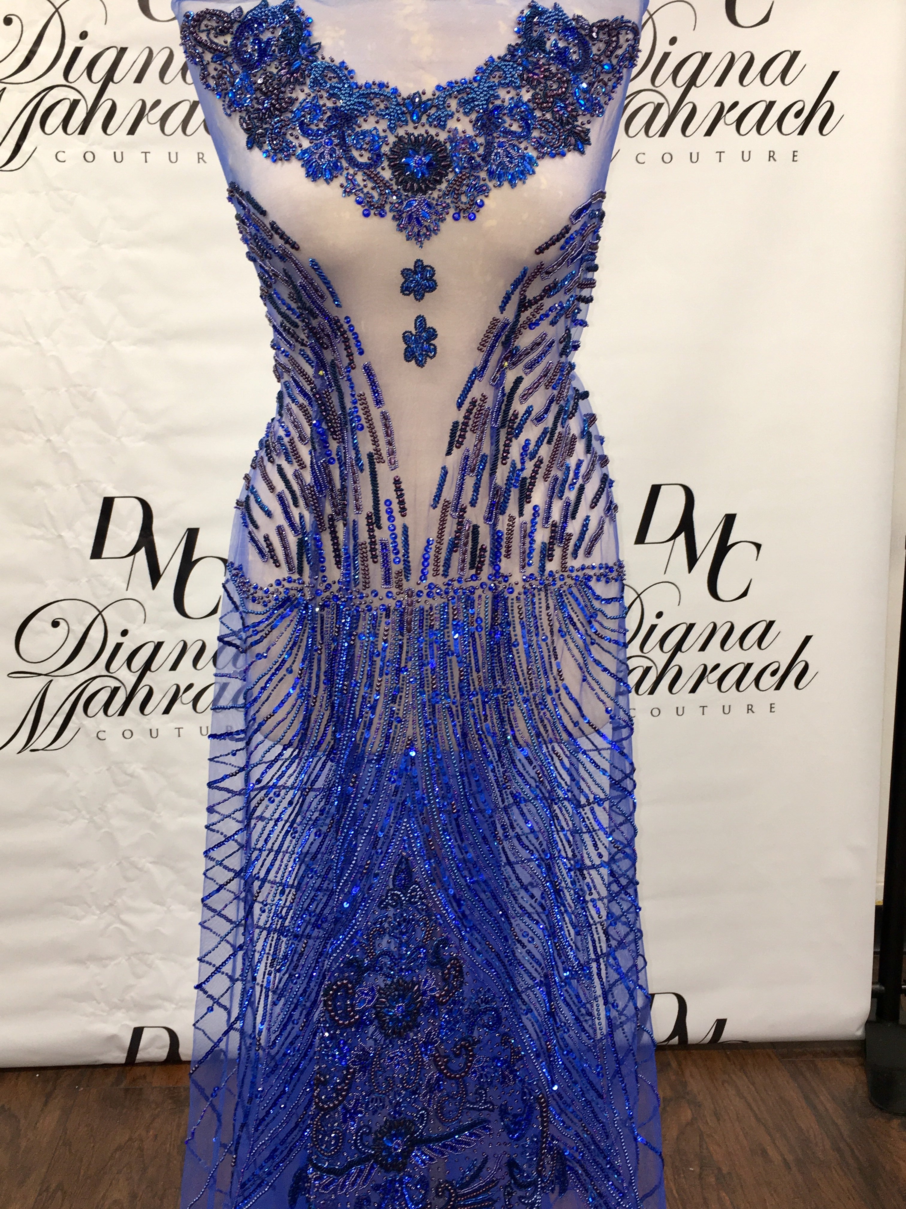 Floor length panel hand beaded on two way stretch mesh and embroidered luxury panel