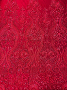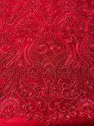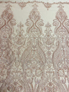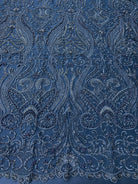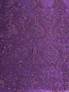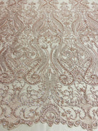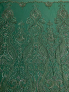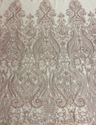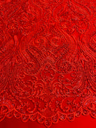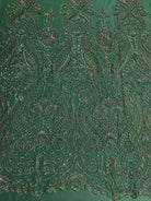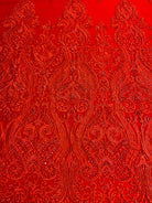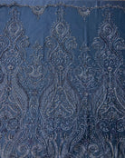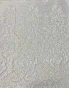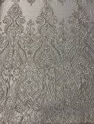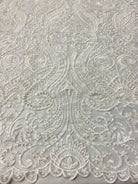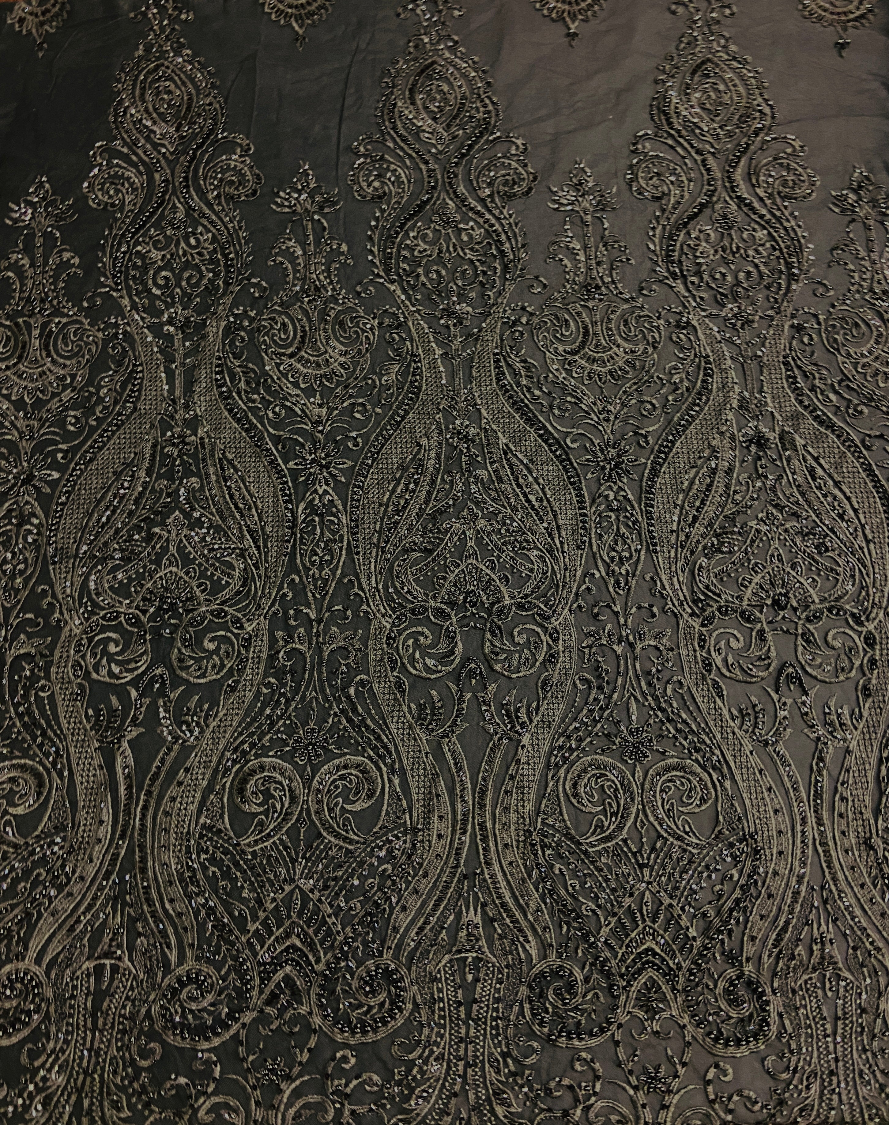 Luxury quality embroidery with hand beaded details on 54" wide translucent mesh.