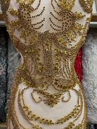 Beautiful hand beaded rhinestone panel with unique swirl design on transparent mesh