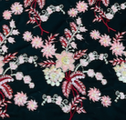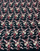 Luxury quality burgundy rose appliques on black mesh 54" wide.