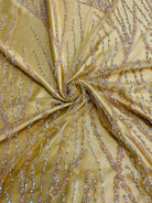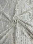 Beads and rhinestones hand sewn on mesh 58" 2 way stretch.