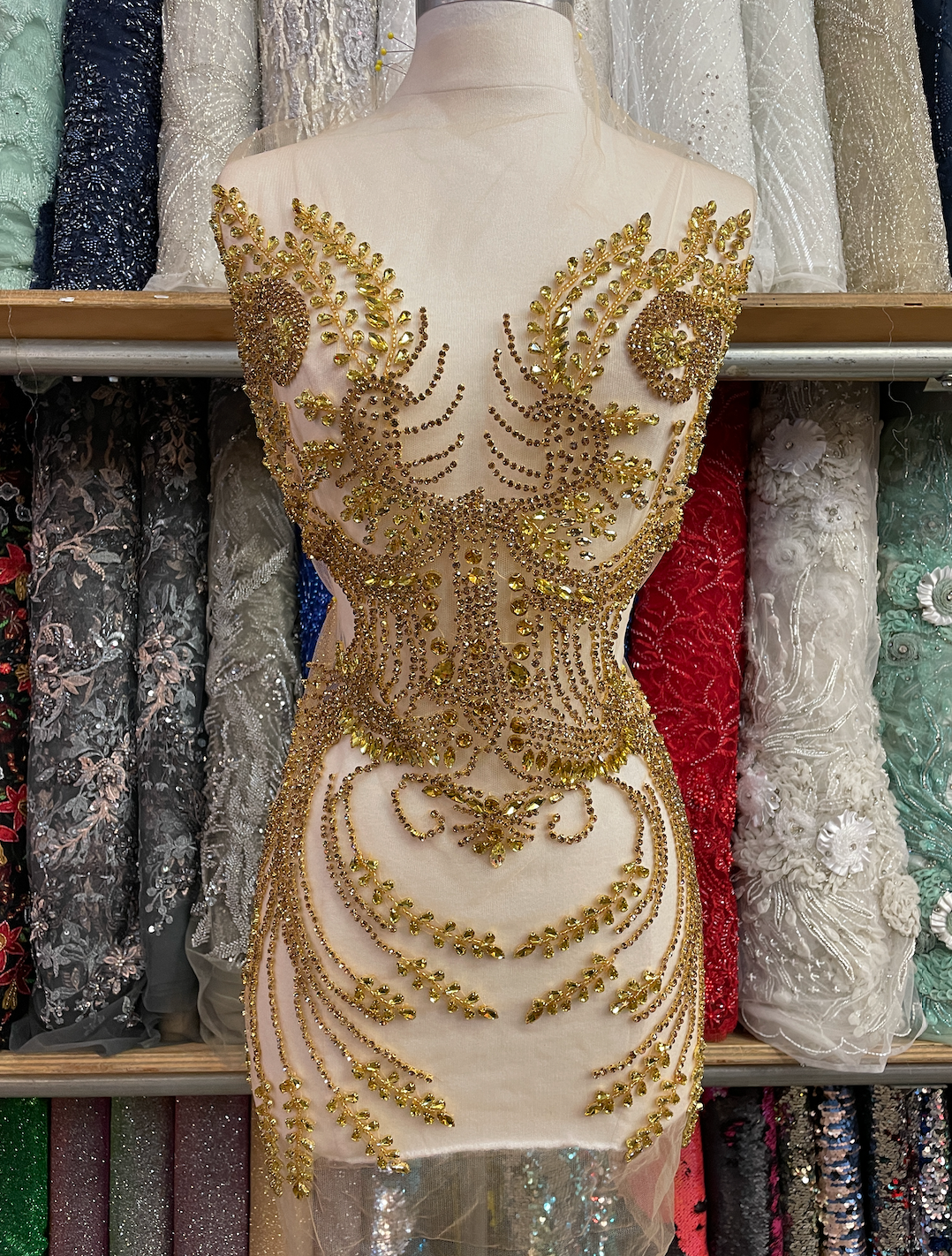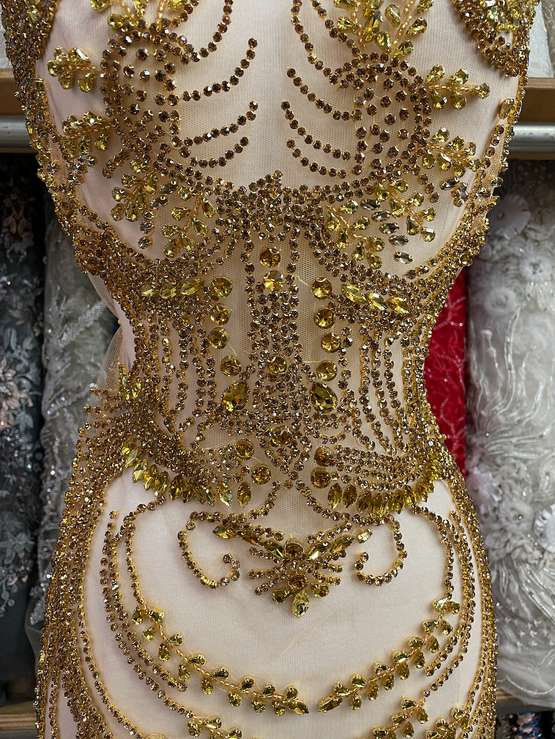 Rhinestone Swirl Galore Panel in Silver and Gold
