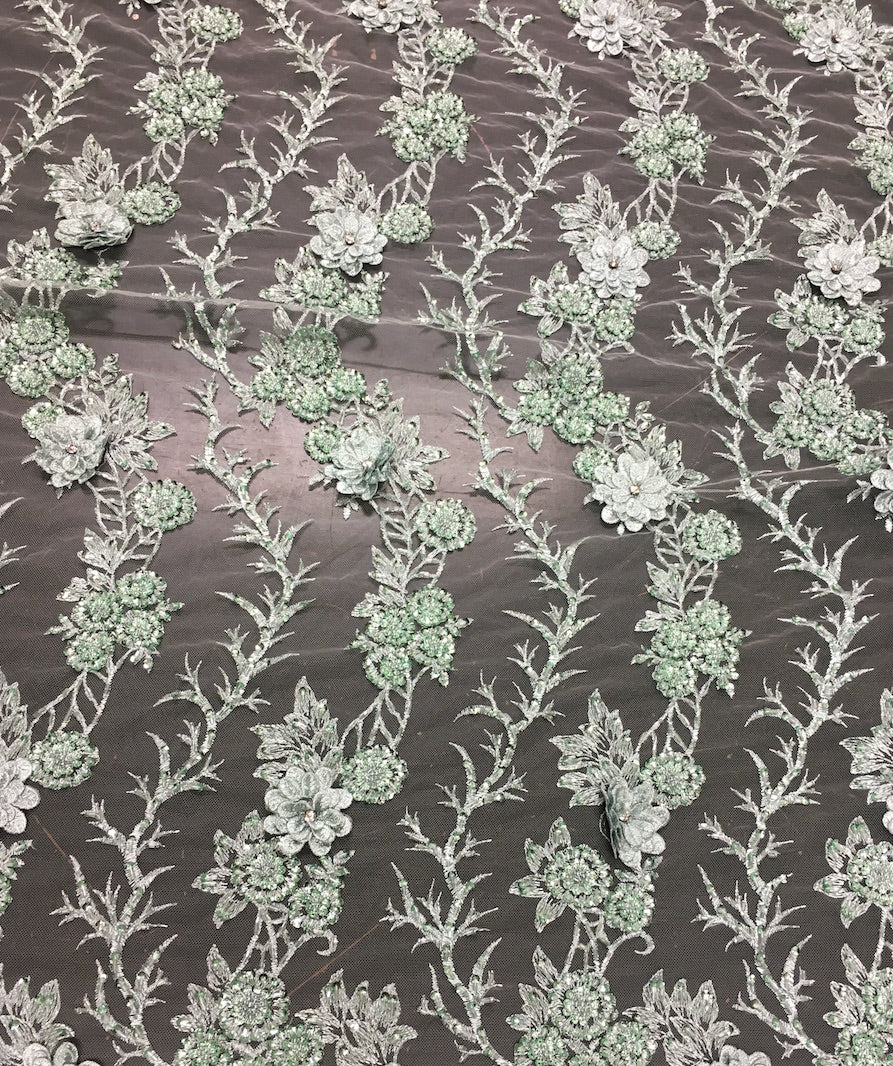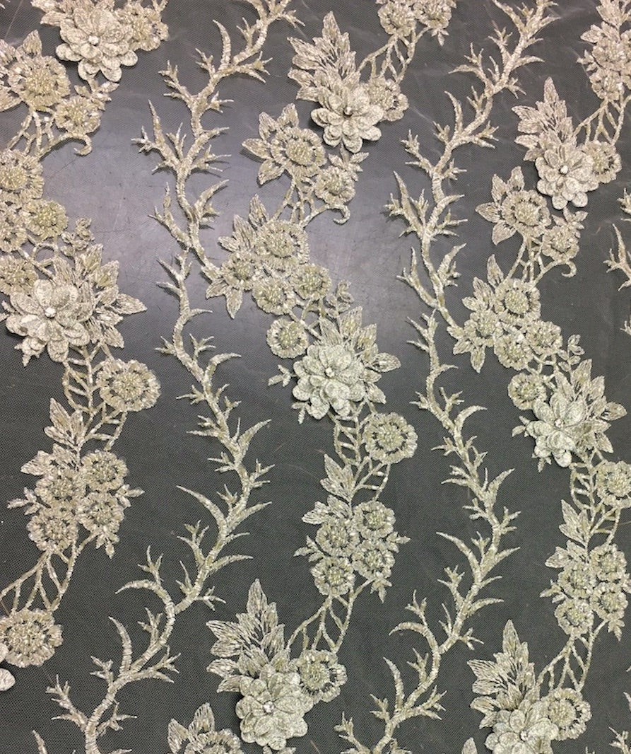 3D hand beaded leaf lace