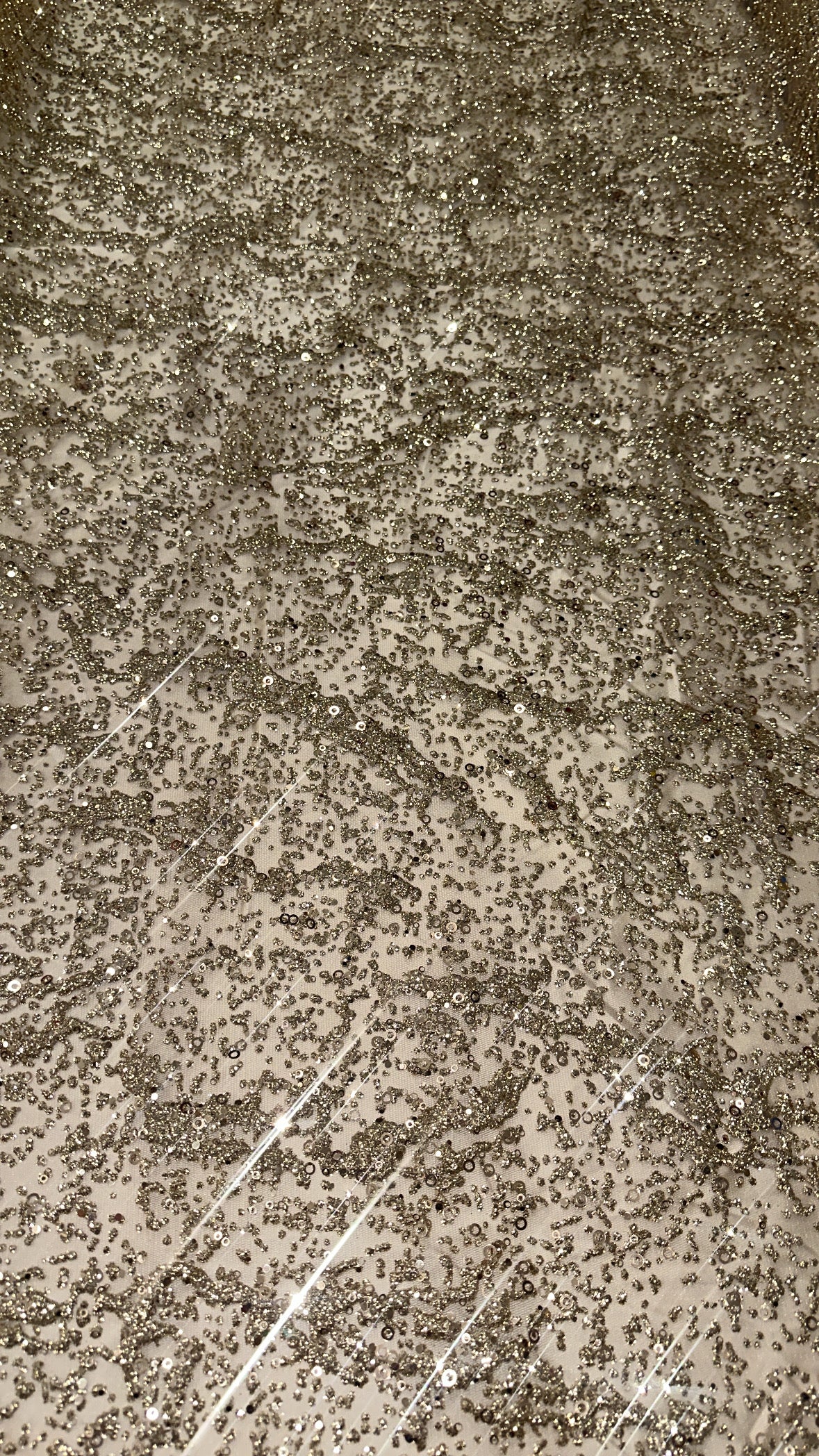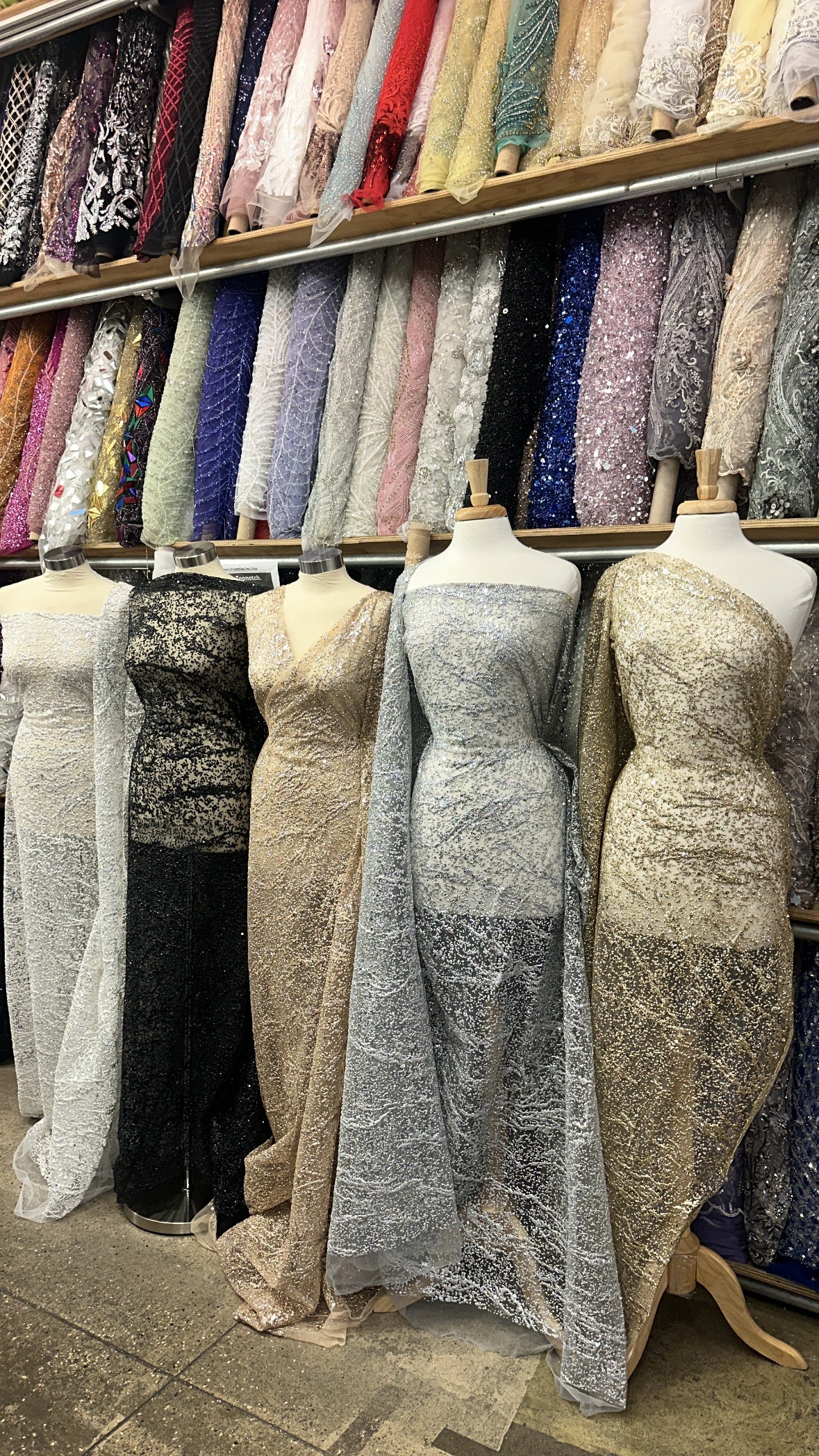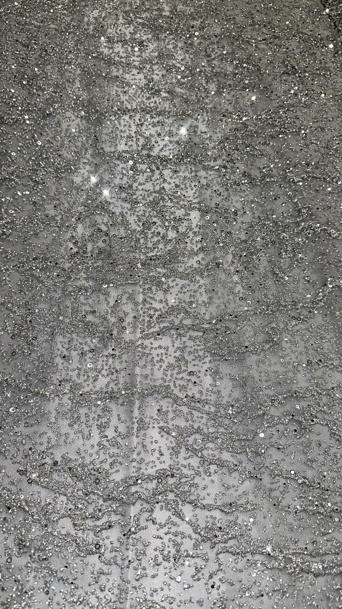 "This glitter fabric dazzles with a radiant sparkle, perfect for making any design stand out with elegance and flair"