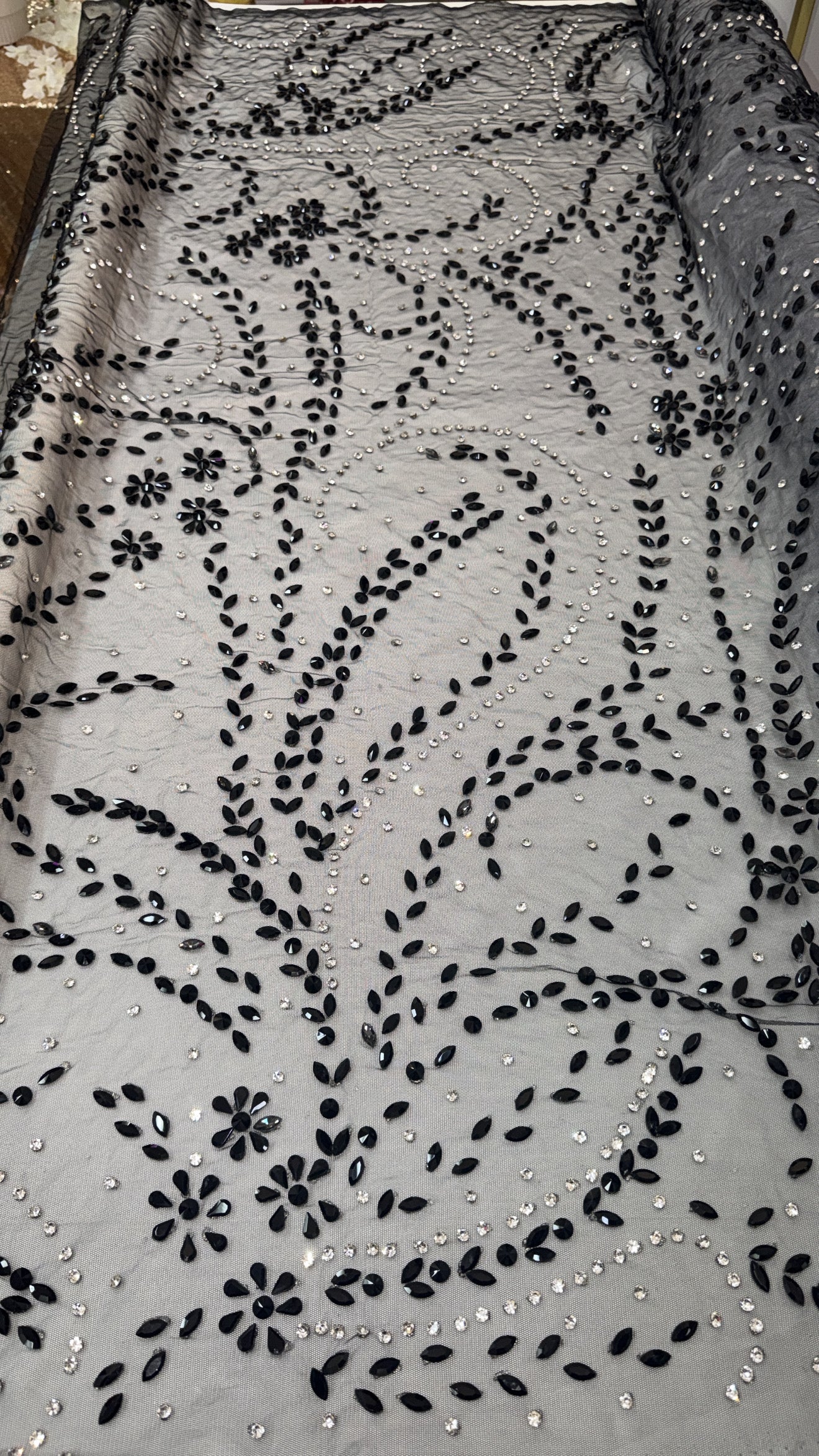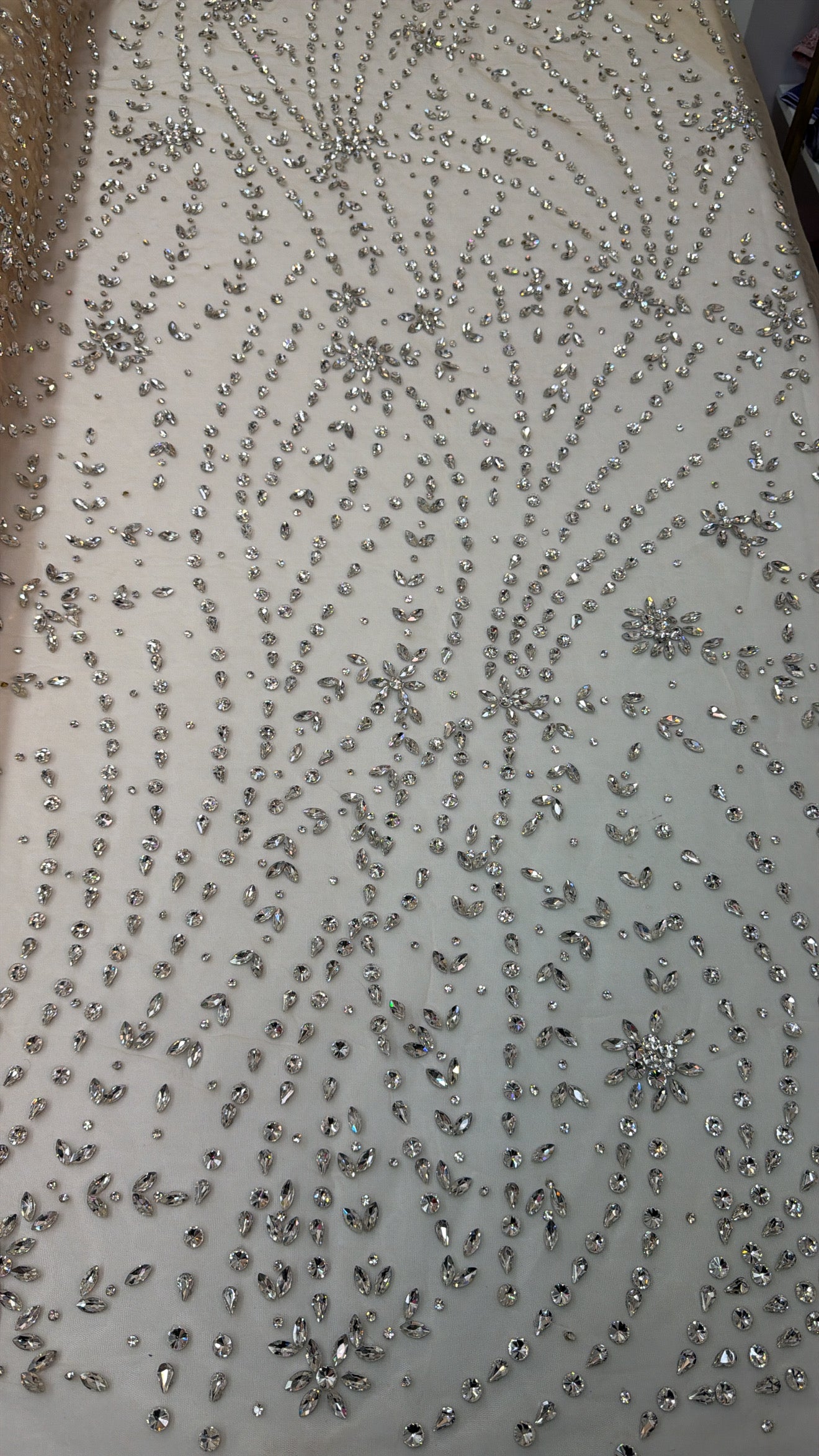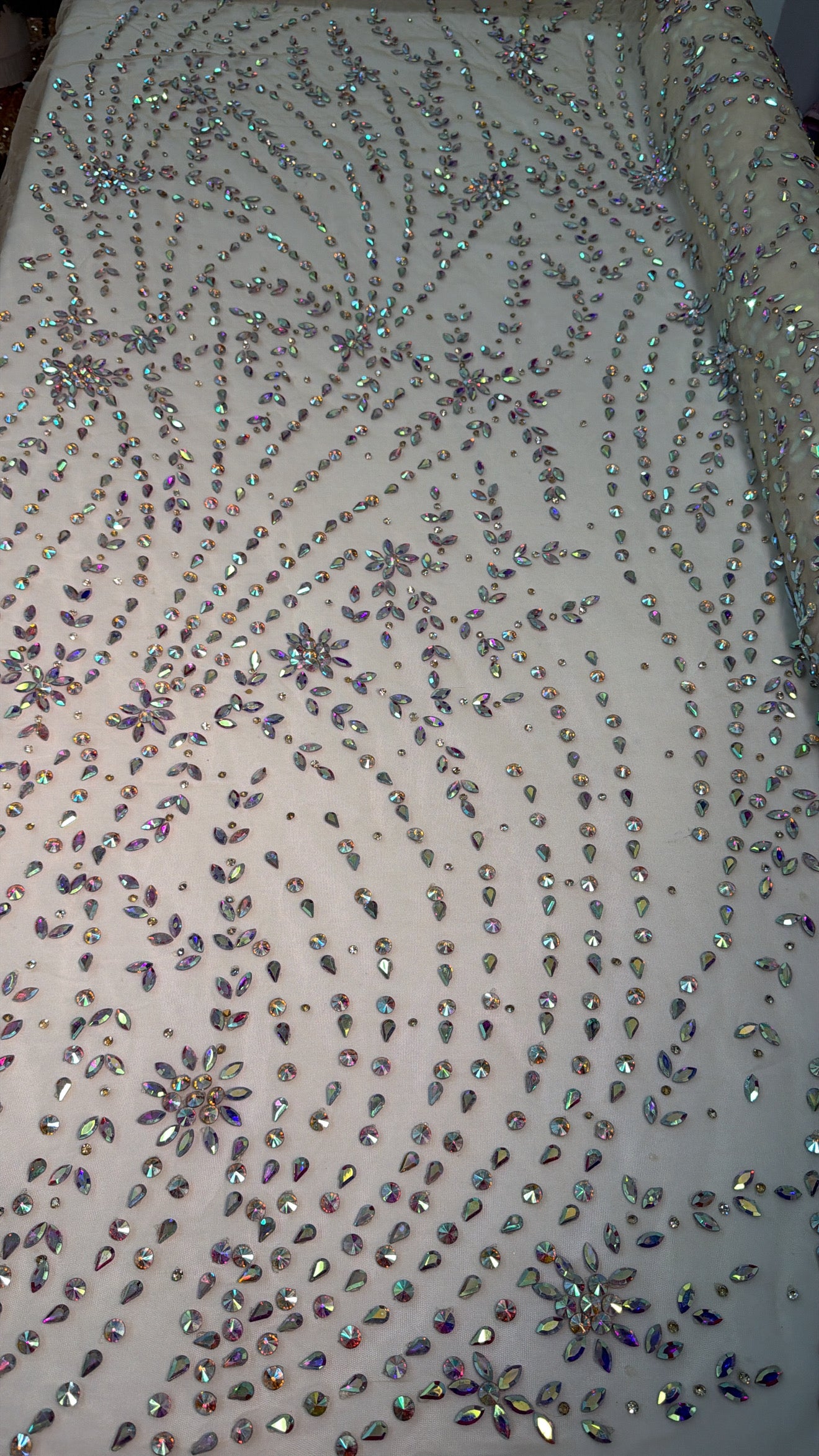 A galaxy of rhinestones woven on a soft mesh, shimmer that steals every spotlight.